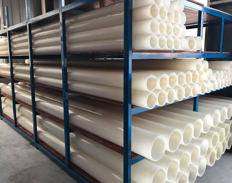 PVDF管材性能優(yōu)異、使用靈活的焊接設(shè)備以及專業(yè)的技術(shù)支持隊(duì)伍不僅可以保證PVDF管材系統(tǒng)的焊接安裝質(zhì)量,還可以根據(jù)需要為客戶提供非標(biāo)產(chǎn)品的定制加工。PVDF管應(yīng)按不同規(guī)格分別放置在貨架的木隔板上,在平坦的地面放置時,要先用相同厚度的枕木作墊層,枕木間距不超過1M,以防管子產(chǎn)生永久性彎曲。管子疊放不超過四層,若有陽光照射,應(yīng)作遮光防護(hù)。對于閥門和管子附件,驗(yàn)收后,按原樣用聚乙烯密封,裝入箱內(nèi)保管。